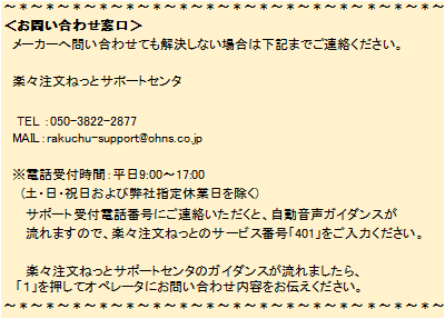 「NBBA楽々注文ねっと」へのお問い合わせは